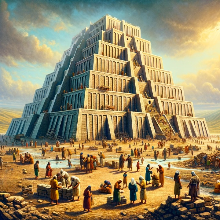 Na die watervloed het al die mense in die wêreld dieselfde taal gepraat; hulle kon almal mekaar verstaan. Op ‘n dag het hulle besluit om ‘n baie groot stad te bou met ‘n toring wat aan die hemel kon raak. Hulle wou beroemd wees en nie oor die hele wêreld versprei word nie.