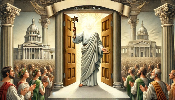 In hierdie gedeelte word aan die gemeente in Filadelfia verklaar dat Christus die finale sleutels oor wie in Sy koninkryk toegelaat word in sy hande vashou. Hy is dus die finale outoriteit en die enigste outoriteit wat hierdie gemeente hoef te vrees. Jesus vertel in Johannes 10 die gelykenis van die herder wat sy skape lei. Hier kondig Hy aan dat Hy ook die deur is en dat die wat kan ingaan om redding te ontvang alleen deur Hom kan ingaan. Johannes 10:9 Ek is die deur; as iemand deur My ingaan, sal hy gered word en hy sal ingaan en uitgaan en weiding vind. In die verhaal van die herder is Jesus die een wat uitgebeeld word in verskillende rolle nl. herder, hekwagter en die deur. Hy is dus ook die een wat beheer het oor die oopmaak en toemaak van die deur. Wat het dit vir hierdie gemeente beteken? Hulle het geleef in ʼn stad waar hulle deur die heidene vervolg sou word en finansiële skade sou lei a.g.v. hulle belydenis van geloof in Jesus Christus. Hulle is uitgesluit van funksies en besigheidsgeleenthede. Selfs tussen die Jode en in die sinagoges was hulle nie welkom nie. Hulle was totale uitgeworpenes in die samelewing. Christus kondig vir hulle aan dat al is al die deure van die dorp vir hulle gesluit is die belangrikste deur, wat nooit vir hulle gesluit sal word nie, vir hulle oop. Die Hemelse stad met twaalf poorte of hekke sal vir hulle nie gesluit wees nie en hulle sal hier welkom wees en met vreugde kan ingaan. Openbaring 21:12 Die stad het ook ‘n groot en hoë muur met twaalf poorte, en by die poorte is daar twaalf engele. Op die poorte is name gegraveer, die name van die twaalf stamme van die kinders van Israel. Waarom sal jy bekommerd wees en hartseer raak omdat jy oral op aarde uitgesluit word, wetende dat jy die Hemelse sal ontvang, dit wat jy nie kan verloor het nie? Openbaring 3:12 Wie oorwin, sal Ek ‘n pilaar in die tempel van my God maak, en hy sal nooit weer daar uitgaan nie… Het Jesus nie aan sy volgelinge vertel dat die ingang na die ewigheid nou is nie? Lukas 13:24 Beywer julle om by die smal deur in te gaan, want baie, sê Ek vir julle, sal probeer om in te gaan, maar sal dit nie regkry nie. Die weg tot die ewigheid sal altyd deur die nou ingang wees. Dit sal nooit die gewilde pad wees of die pad wat deur die meerderheid gevolg word nie. Dit is die pad wat jy dikwels teen populêre opinie, alleen sal loop. Die roete waar jy deur almal gehaat sal word. Matteus 10:22 En julle sal deur almal gehaat word ter wille van my Naam. Maar wie volhard tot aan die einde, dié sal verlos word. Dit is dan ook presies wat hierdie gemeente ervaar het. Al was hulle sodanig vervolg dat hulle al swak was, het hulle des nie teenstaande vasgehou aan God se Woord. Hulle het die Woord bly verkondig ten spyte van verdrukking en vervolging.