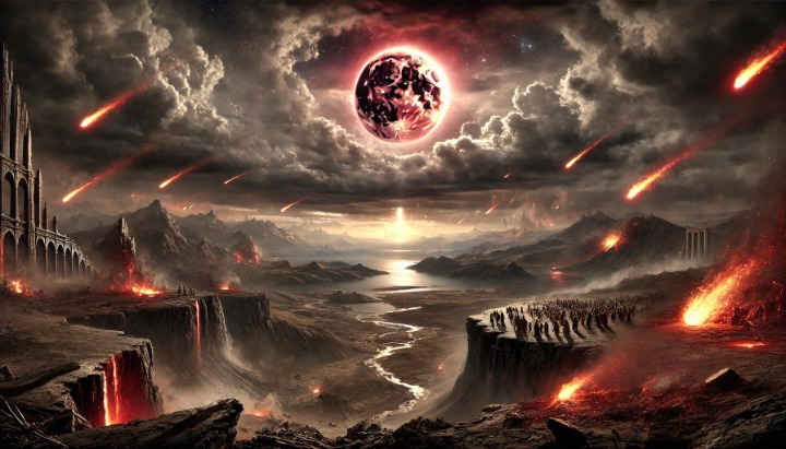 Ons beleef nou alreeds aardbewings en natuurrampe, maar Jesus sê dat dit wat ons nou beleef slegs geboortepyne is, en dat dit elke gelowige moet herinner aan die finale oordeel wat op pad is, die dag wanneer die Seun van die Mens weer op die wolke verskyn en die kragte van die hemel geskud gaan word. Matteus 24:29-30 Onmiddellik ná die verdrukking van daardie dae sal die son verduister word, en die maan sal sy lig nie gee nie, en die sterre sal van die hemel val, en die kragte van die hemele sal geskud word. Dan sal die teken van die Seun van die Mens aan die hemelruim verskyn, en dan sal al die stamme van die aarde rouklaag, en hulle sal die Seun van die Mens sien kom op die wolke van die hemel met krag en groot heerlikheid. Hierdie vernietiging van die Kosmos word ook herhaal deur Petrus in sy tweede brief. 2 Petrus 3:10 Die dag van die Here sal egter kom soos ‘n dief, ‘n dag waarop die hemele met ‘n gedruis tot ‘n einde sal kom, en die elemente sal uitbrand en vergaan, en die aarde en wat daarop gedoen is, ontbloot sal word.