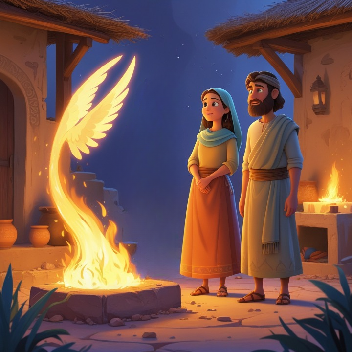 Sy het vir Manoag vertel en hy het tot die Here gebid dat die man van God weer aan hulle sou verskyn. God het sy gebed beantwoord, en toe die Engel weer aan hulle verskyn, het hulle hom gevra wat hulle moes doen. Die Engel het herhaal: