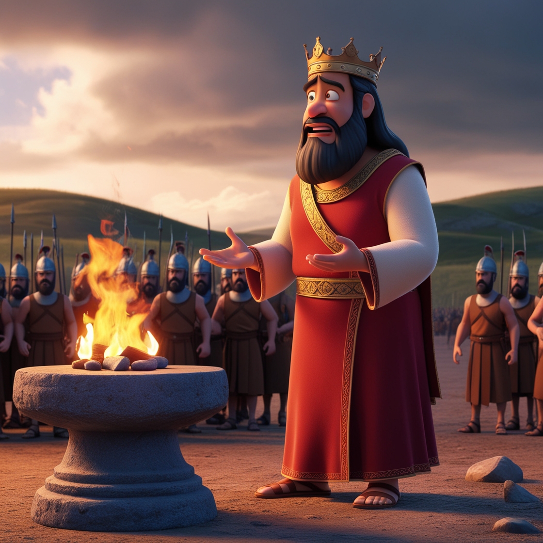 “Ek het die manne sien weggaan, jy het nie gekom nie en die Filistyne is bymekaar. Toe het ek gedink dat ek die Here aan my kant moet kry deur aan Hom te offer. “