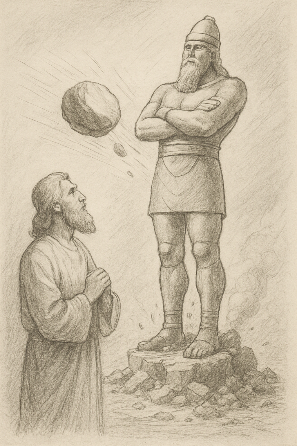 Al die koninkryke van die wêreld is deel van die beeld. Hierdie beeld sal vernietig word deur ʼn klip wat sal losbreek sonder die toedoen van mense hande en dit sal die beeld totaal vernietig. Jesus word gestuur deur sy Vader en kom in die Krag van God. Jesaja 63:5 Ek het rondgekyk, maar daar was geen helper nie. Ek was verslae – daar was niemand wat ondersteuning bied nie. My voorarm het My tot hulp gekom, my woede, dit het My ondersteun. Die koninkryke van hierdie wêreld moet nooit ons anker wees nie. Die beeld staan teenoor die Kerk of dan die koninkryk van God op aarde. As Pilatus vir Jesus uitvra oor sy koninkryk vertel Jesus aan hom: My koningskap is nie van hierdie wêreld nie. As my koningskap van hierdie wêreld was, sou my dienaars geveg het, sodat Ek nie aan die Jode uitgelewer word nie. Maar nou is my koningskap nie van hierdie wêreld nie. Johannes 18:36.
