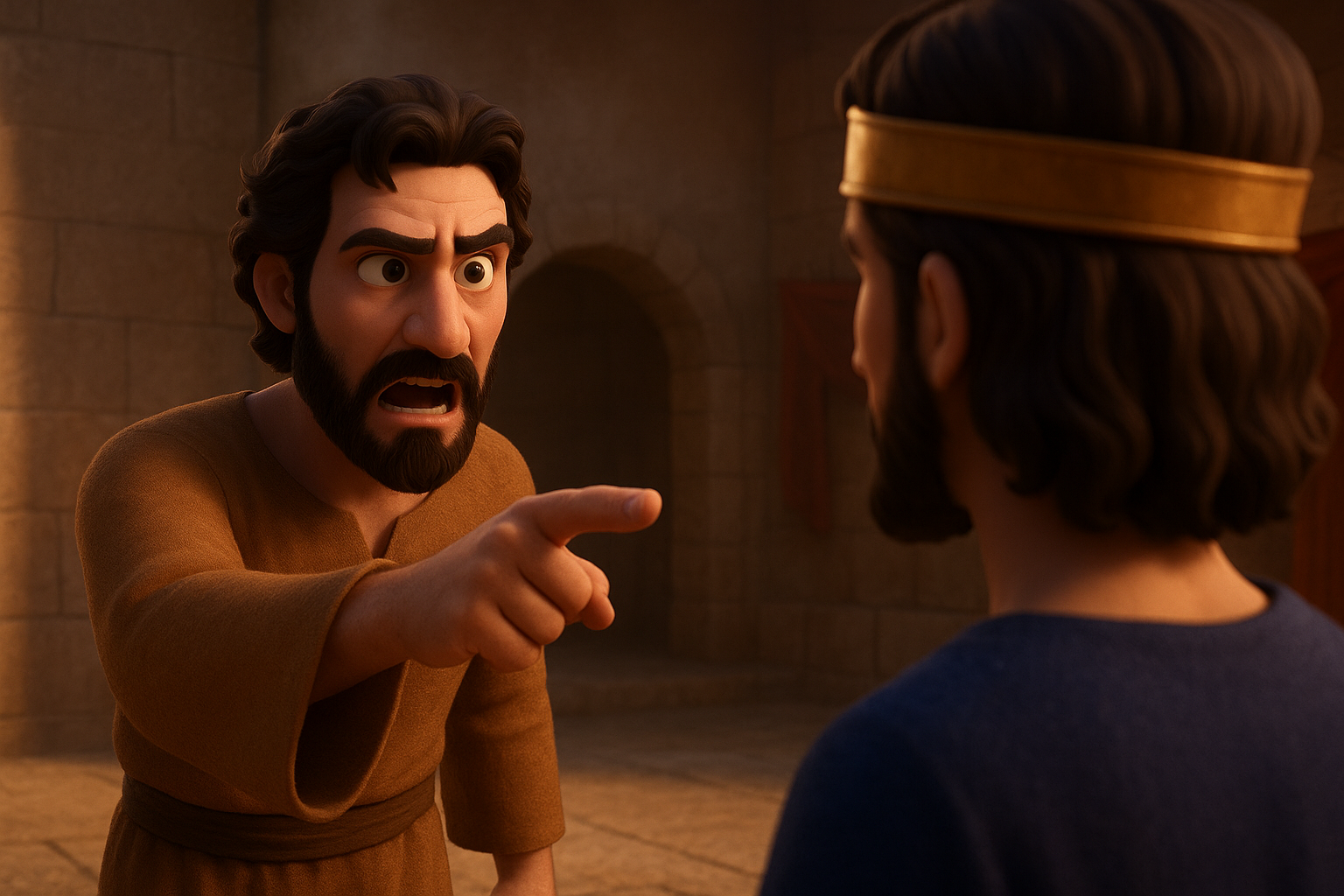 Een aand het Dawid op die dak van sy huis geloop. Hy het ’n vrou sien bad, en sy was baie mooi. Dawid het mense gestuur om te vra wie sy is. Hulle het gesê: