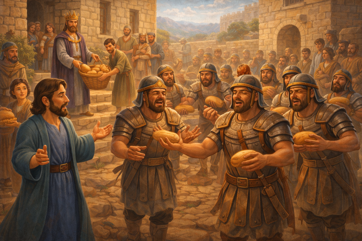 “Jy mag hulle nie doodmaak nie. Jy sou nie mense doodmaak wat jy met die swaard en boog gevange geneem het nie. Gee vir hulle kos en water, sodat hulle kan eet en drink, en laat hulle dan teruggaan na hulle koning.”