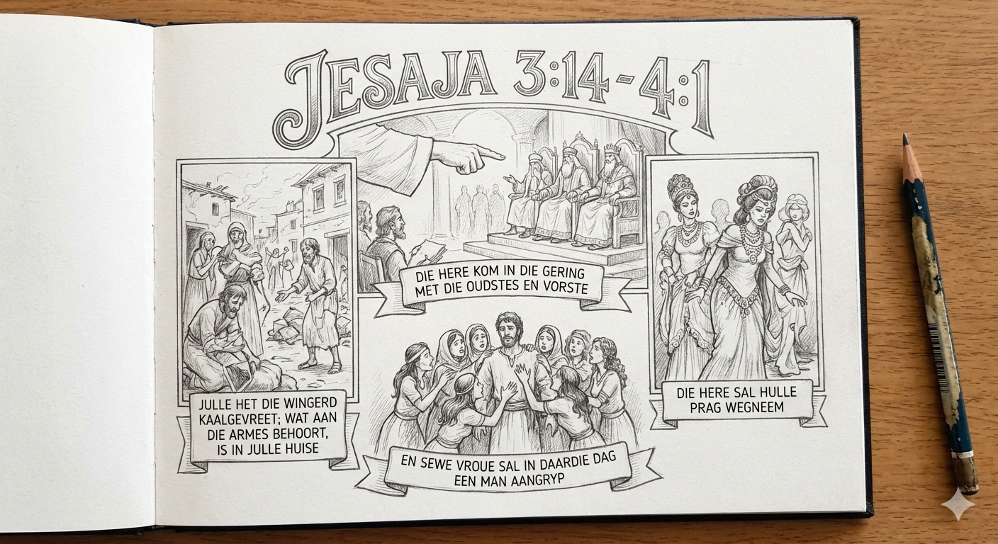 God staan gereed om die volke te oordeel, maar soveel te meer is Hy gereed om die mense van sy eie volk te oordeel. Jeremia 25:29 Want kyk, in die stad waaroor my Naam uitgeroep is, begin Ek met die onheil – sal julle dan enigsins vryspring? Julle sal nie vryspring nie, want Ek gaan ‘n swaard oproep teen al die inwoners van die aarde, is die uitspraak van die Here, Heerser oor alle magte. Dit word ook bevestig in die Nuwe Testament dat God eerste oor sy kerk sal oordeel. 1 Petrus 4:17 Dit is immers tyd dat die oordeel begin, en wel by die huishouding van God. As dit by ons begin, wat sal dan die uiteinde wees van hulle wat aan die evangelie van God ongehoorsaam is? Dit is dan ook waar Jesaja se oordeel begin wanneer hy aan die leiers en die oudstes sê dat God met hulle na die gereg sal gaan.